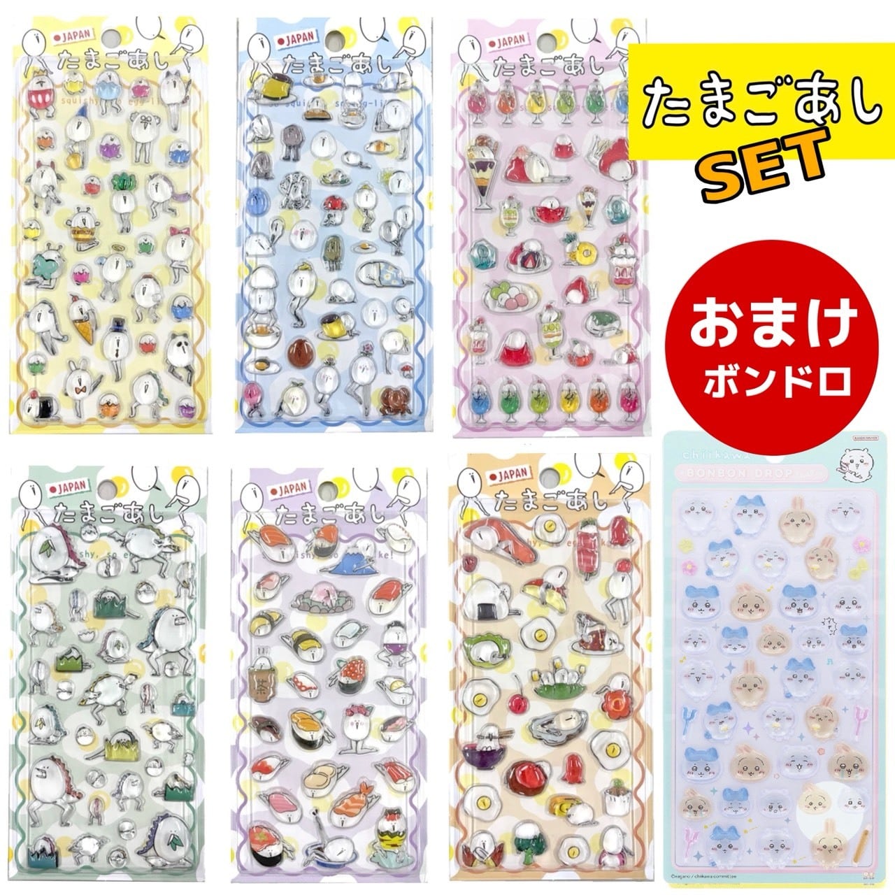 たまごあし6種+ボンボンドロップシール【ちいかわ×ハチワレ×うさぎ】セット